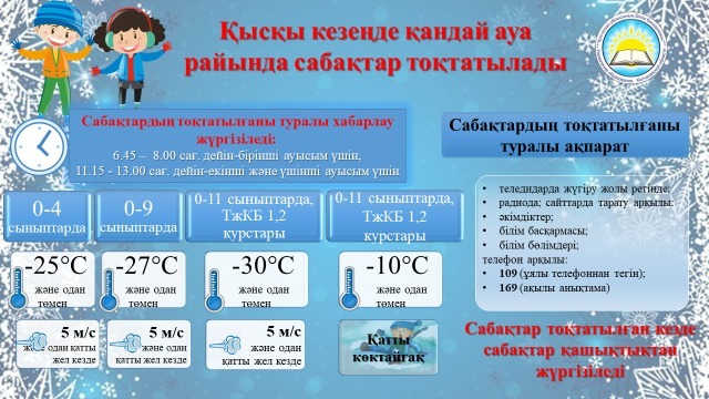 Қысқы кезеңде қандай ауа райында сабақтар тоқтатылады
