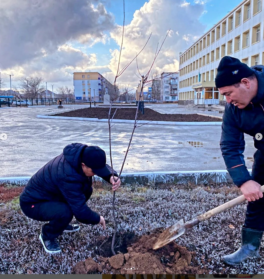 Мектеп ауласына ағаш отырғызу жұмыстары