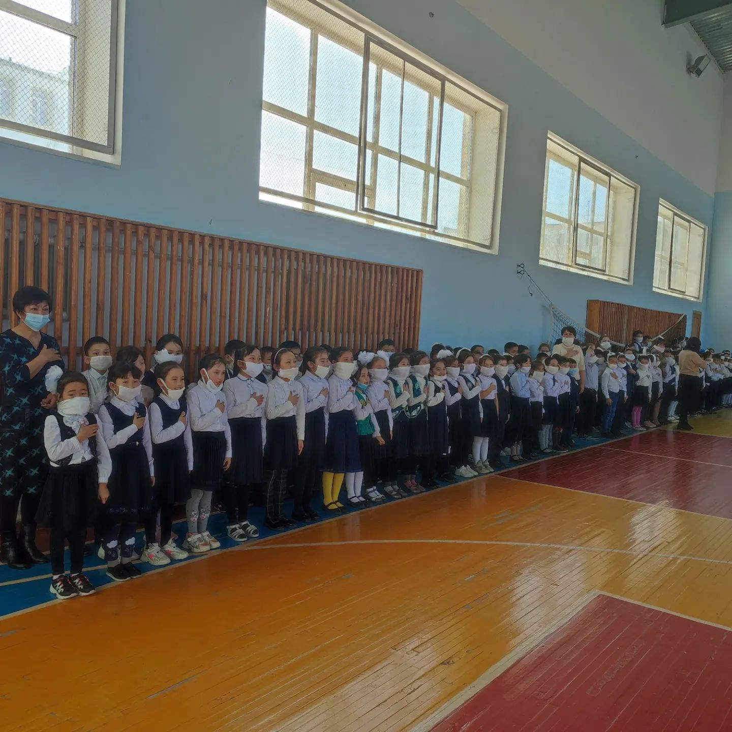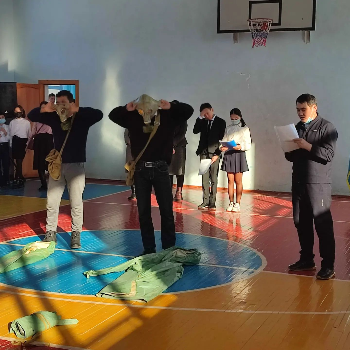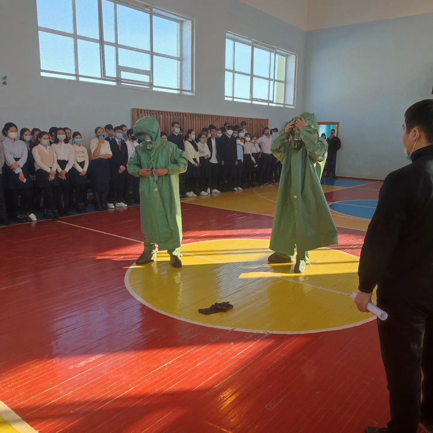 Дүниежүзілік Азаматтық Қорғаныс күнін мерекелеу барысында мектебімізде оқу ауысымдары бойынша салтанатты жиындар өткізілді. Барлық оқушылар жеке қорғаныс заттары - мақталы дәкеден жасалған бетперделерін қолданды. Жиында А.К. Биекин жетекшілігімен "Жас сарбаз" клубының мүшелері мен 11 сынып оқушылары төтенше жағдайда алғашқы медициналық көмекті көрсету жолдарын оқушыларға таныстырды.