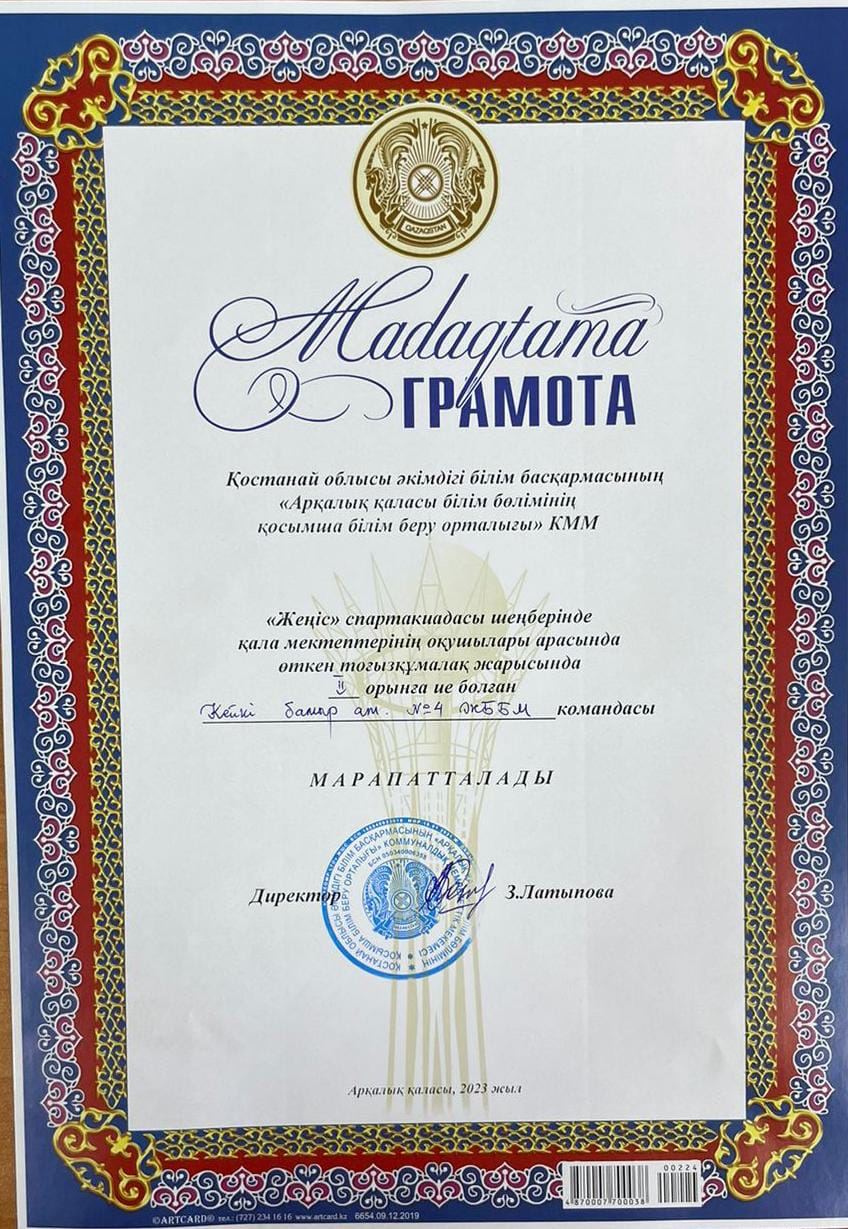Қосымша білім беру орталығының ұйымдастыруымен өткен "Жеңіс" спартакиадасы шеңберіндегі тоғызқұмалақ жарысында мектебіміздің оқушылары жалпы командалық есеп бойынша жүлделі
