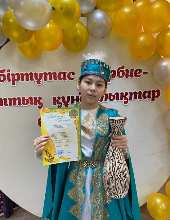 "Біртұтас тәрбие" бағдарламасы аясында қала және ауыл мектептерінің қатысуымен өткен Тұманбай Молдағалиевтің туғанына 90 жыл толуына орай өткен "Әнім саған аманат" ән байқауына мектебіміздің 8 "Б" сынып оқушысы Жұмабек Інжу қатысып, жүлделі ІІ орынды жеңіп алды. Жетекшісі Муханбетжанова Т.С.