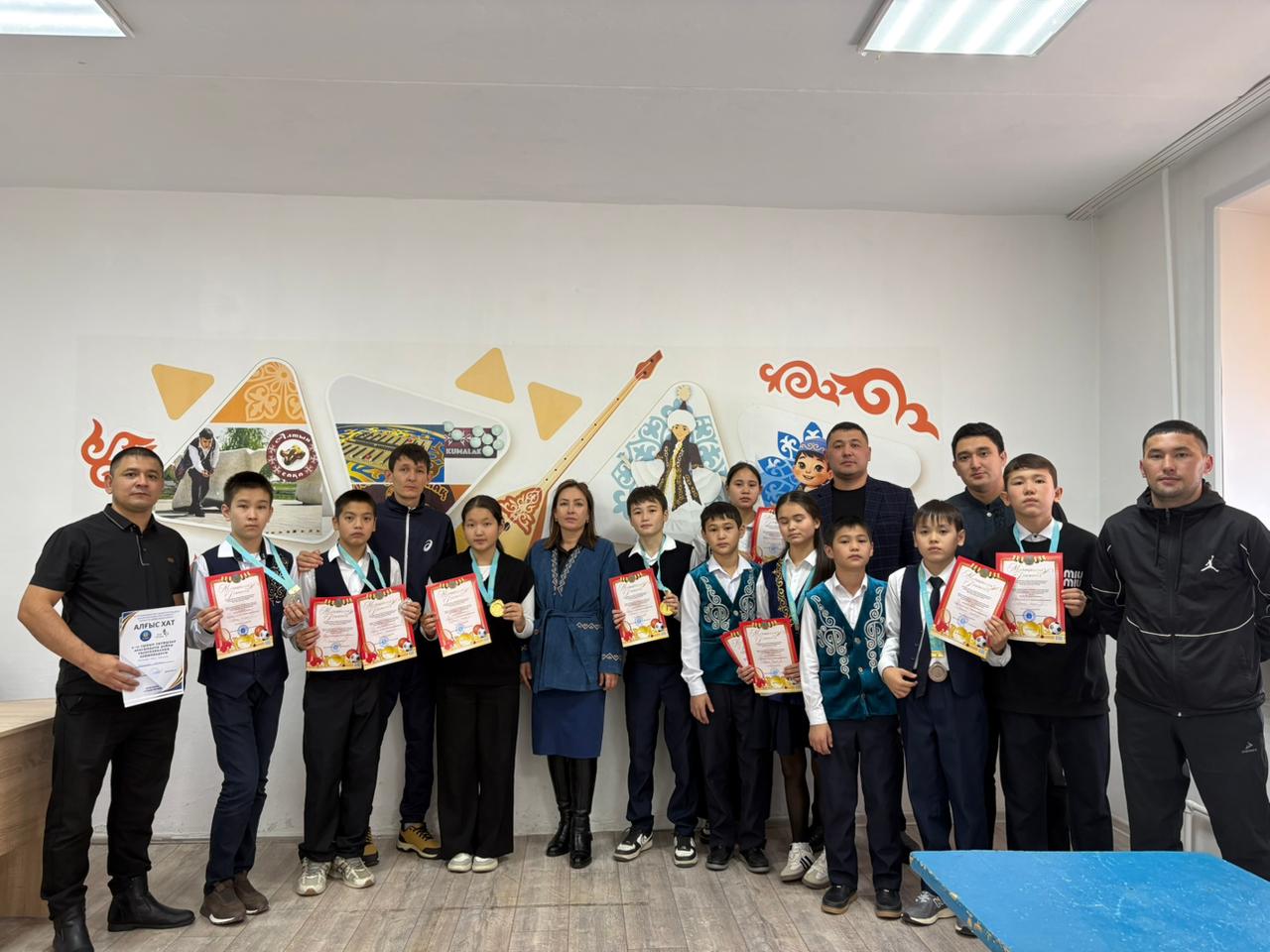 Біздің мектебіміздің оқушысы Дәрмен Бейбарыс ІІ тақтада ойнап, жүлделі ІІ орынға ие болды.