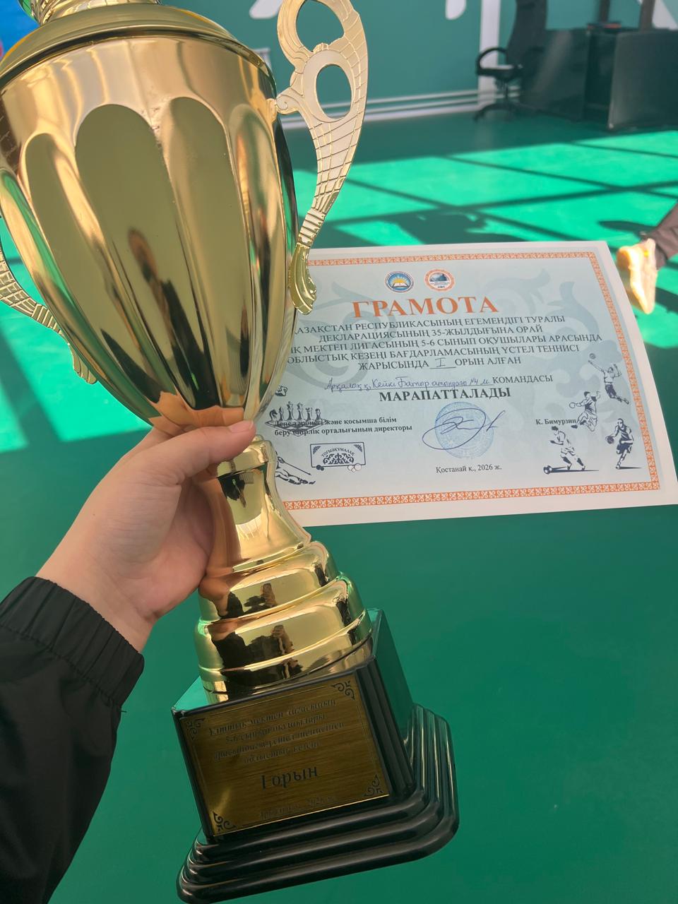 Қазақстан Республикасының Егемендігі туралы декларацияның 35 жылдығына орай ұйымдастырылған Ұлттық мектеп лигасының 5–6 сынып оқушылары арасындағы облыстық кезең бағдарламасы аясындағы үстел теннисі жарысына мектебімізден оқушылардың командасы қатысып жүлделі І орынды жеңіп алды.