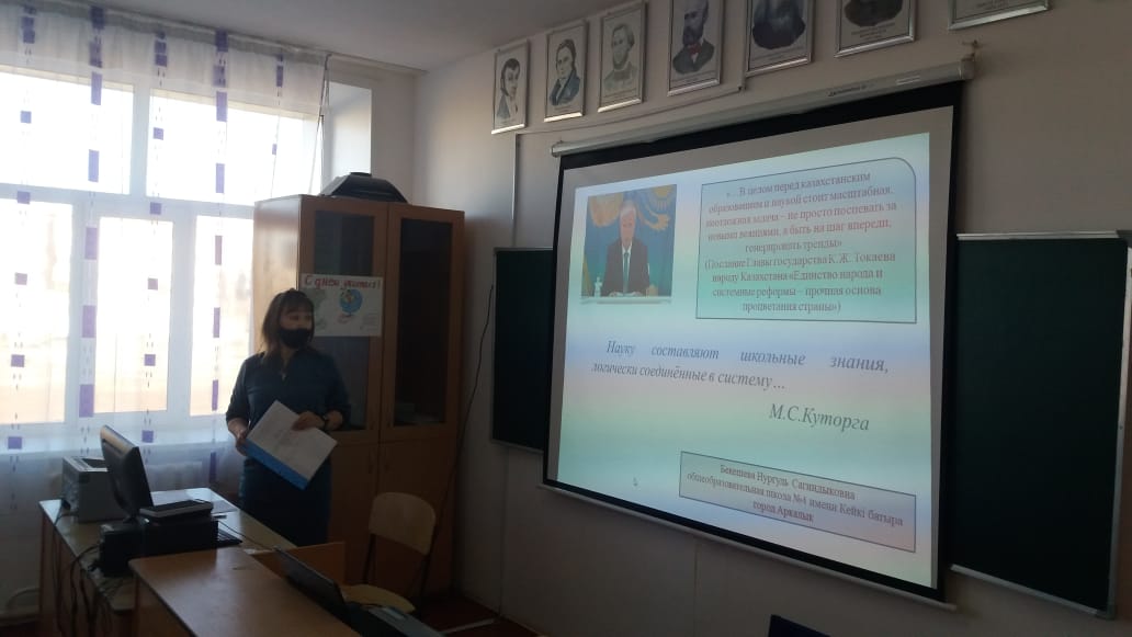 С цитаты Президента РК господина Токаева К.К 20 октября началось выступление учителей начального звена общеобразовательной школы №4 имени Кейкі батыра г.Аркалыка Бекешевой Н.С и Ешмагалиевой А. Данные педагоги стали участниками областного семинара, в ходе которого поделились опытом работы по развитию научного мышления младших школьников. Педагоги рассказывали, демонстрировали, какие эффективные инновационные методики для развития научного мышления используют на уроках. Вниманию коллег также была представлена презентация, где можно было увидеть цели, задачи, ожидаемый результат, формы работы, практическую часть учителей по данной теме. Всем присутствующим был показан фрагмент защиты научной работы ученика 1 класса Казбекова Руслана в дистанционном формате. Работа данного ученика достойно заняла призовые места на школьной научно – практической конференции и на городской НПК.