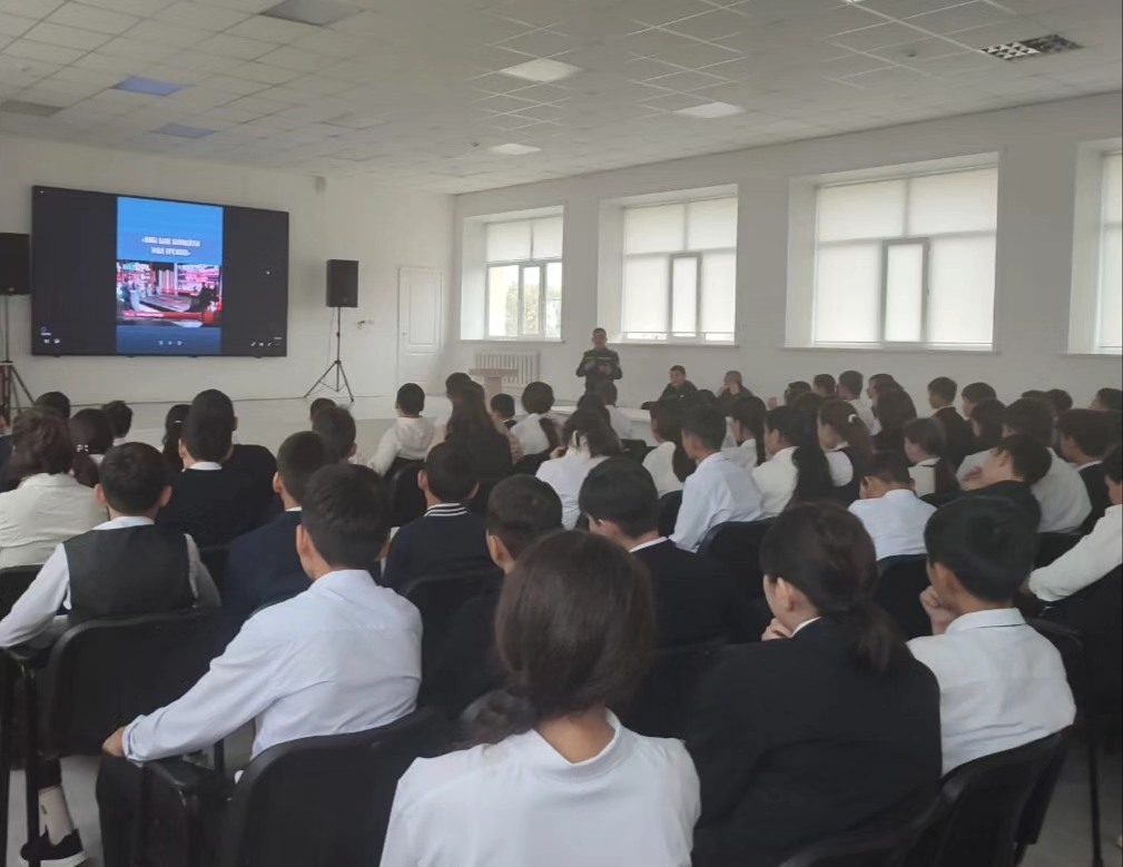 Құқық қорғау қызметкерлері мынаны айтып өтті: бала құқығы, қоғамдағы құқық бұзушылық, жалған қоңырау жауапкершілігі, ұсақ құқық бұзушылық, түнгі уақытта оқушылардың жүрмеуі, тарихи – мәдени ескерткіштердің, табиғи обьектілердің бұзылмау жайында мол мағлұмат берді. Заң алдында бәріміз бірдей жауап беретіндігіміз жайлы айтып берді.