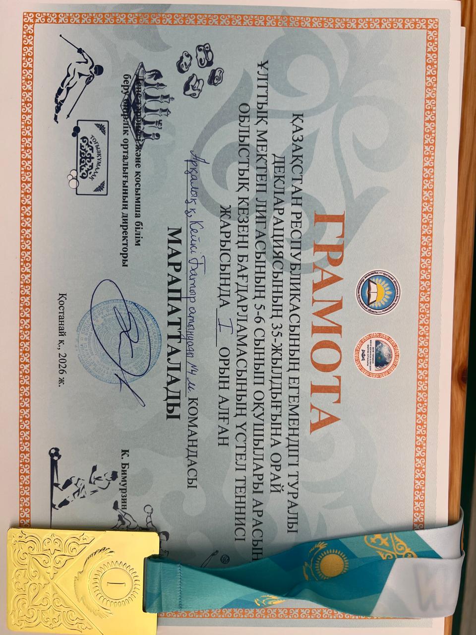 Қазақстан Республикасының Егемендігі туралы декларацияның 35 жылдығына орай ұйымдастырылған Ұлттық мектеп лигасының 5–6 сынып оқушылары арасындағы облыстық кезең бағдарламасы аясындағы үстел теннисі жарысына мектебімізден оқушылардың командасы қатысып жүлделі І орынды жеңіп алды.